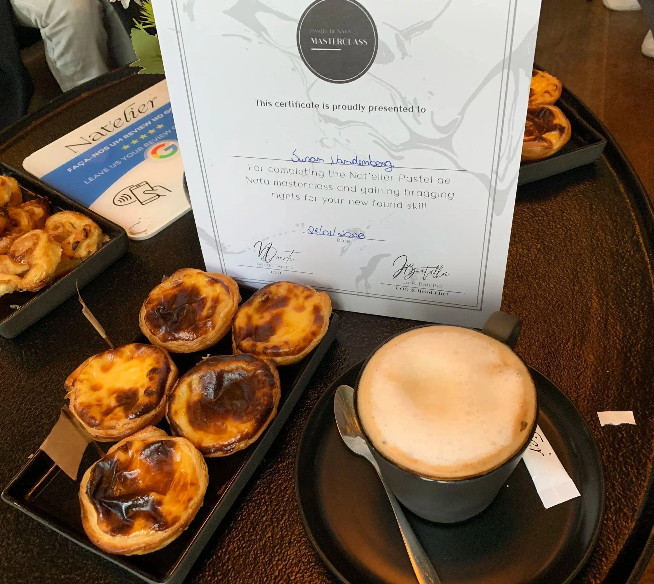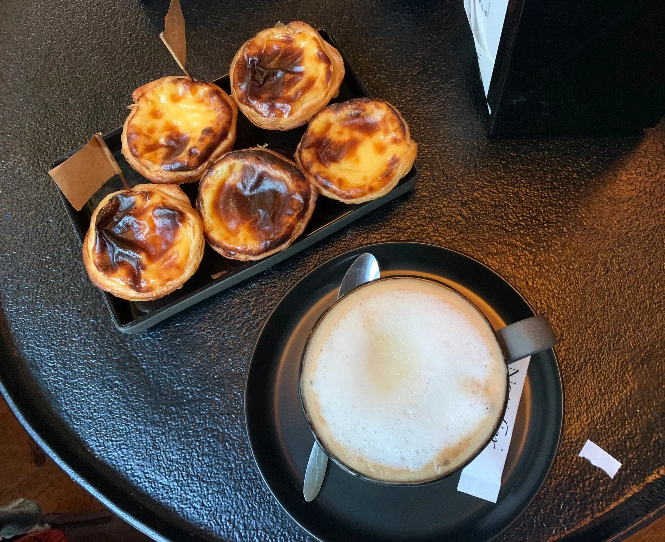 After class we were invited upstairs to a sitting area to enjoy our freshly baked pasteis along with a coffee beverage of our choice.