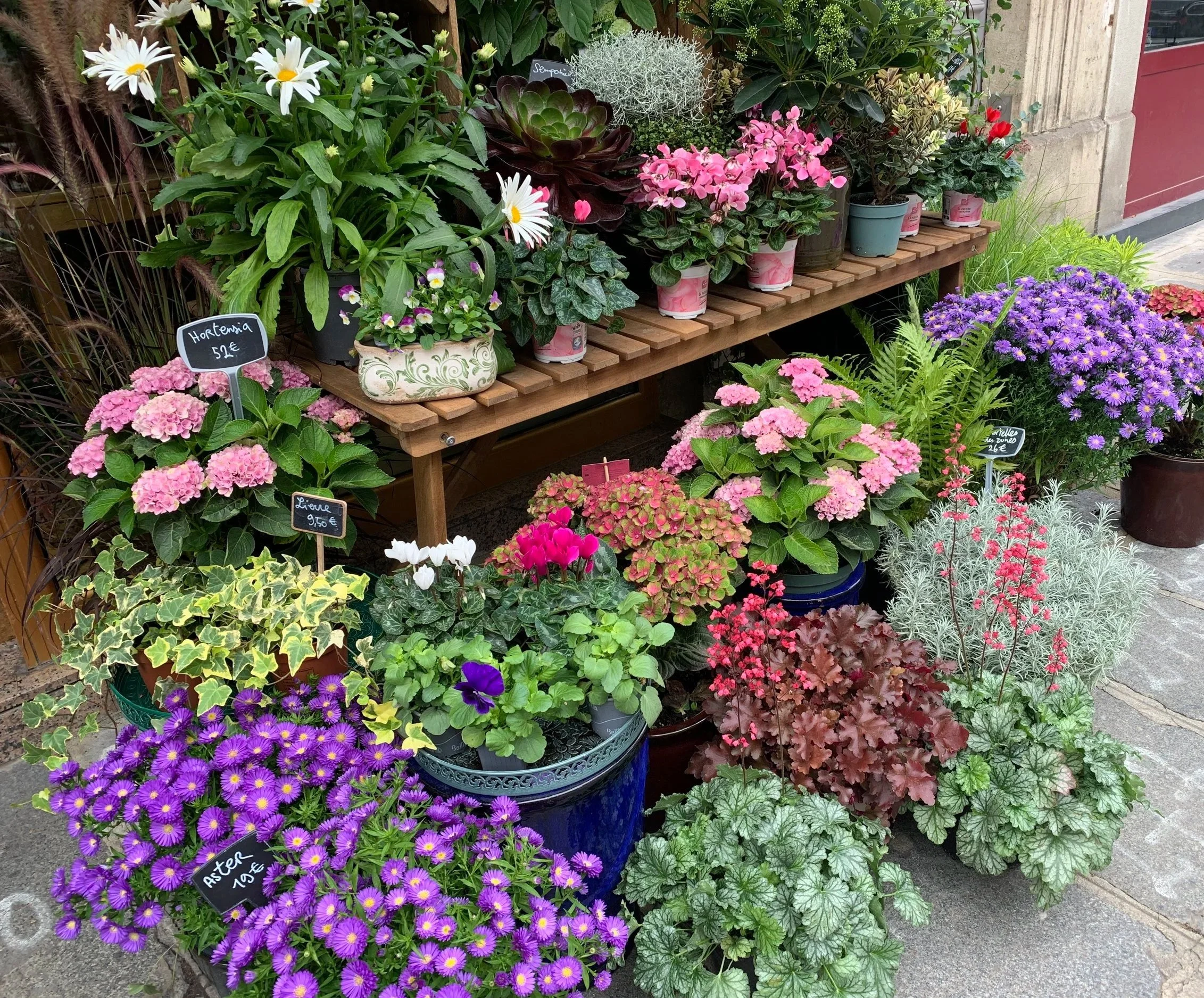 florist shop sidewalk display in Paris